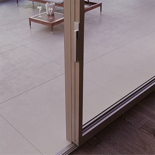 La soglia, completamente incassata nel pavimento, nel soffitto e nelle pareti laterali, oltre a rendere il design del Minimal Slide estremamente raffinato, abbatte completamente ogni barriera architettonica e prevede un sistema di drenaggio delle acque: